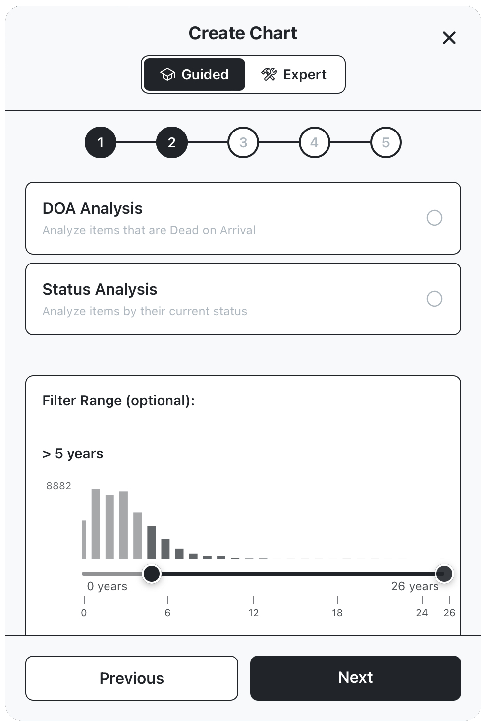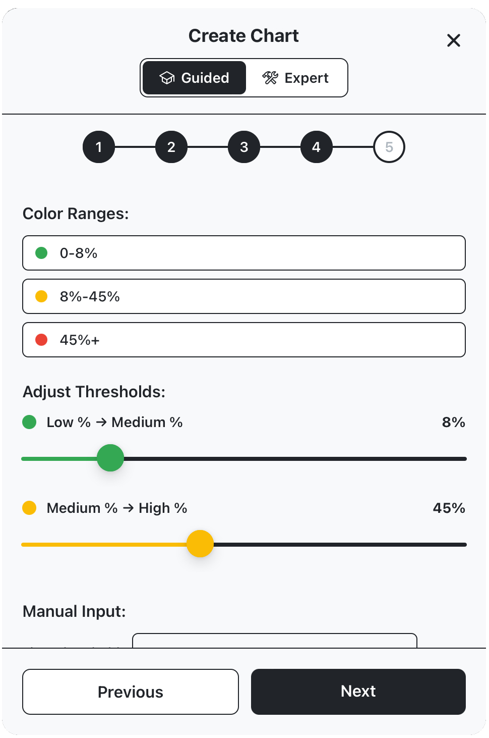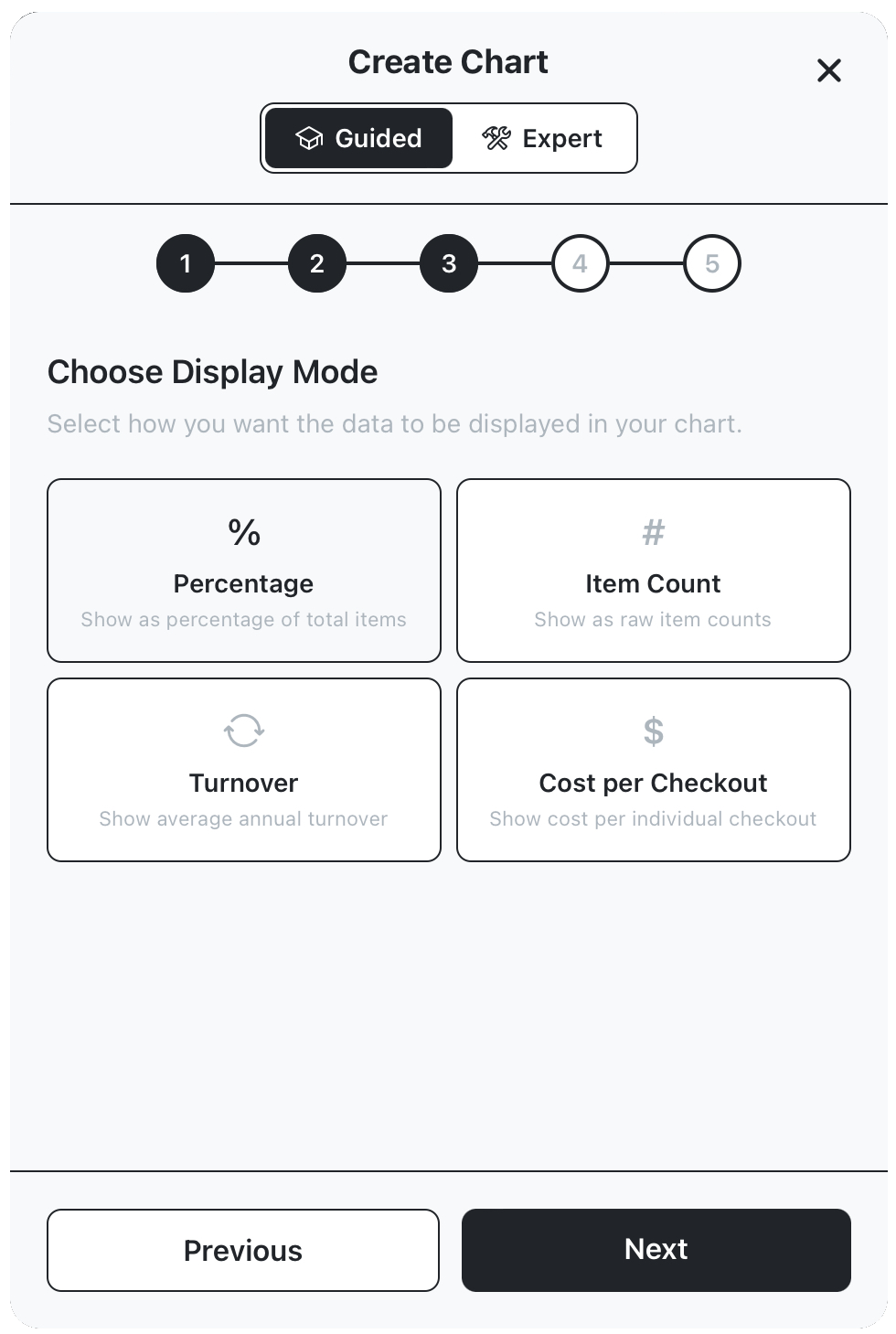 Create chart using guided walkthrough mode